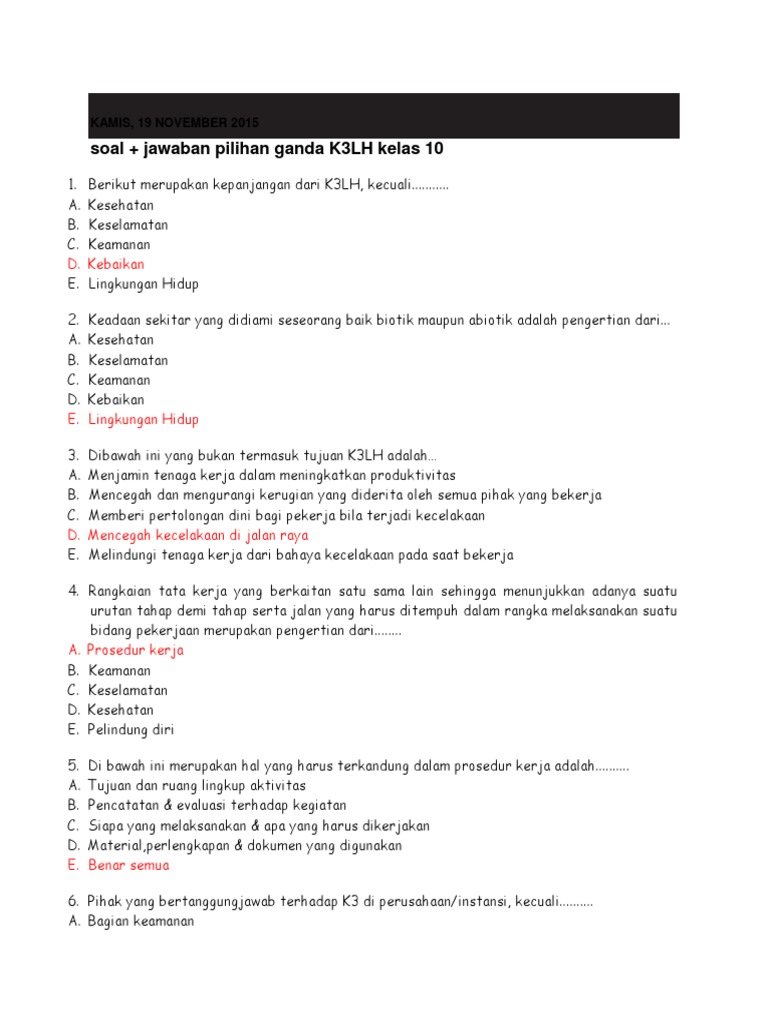 Jawaban soal essay k3lh smk keselamatan kesehatan dan keamanan kerja dan lingkungan hidup ditulis griyachumaidi 18 03 15 tulis komentar edit sahabat pembaca yang baik hati dan semoga. Contoh soal dan jawaban k3lh akuntansix tkj soal dan jawaban perbaikan pc pilihlah salah satu jawaban yang paling tepat. 80 80 menganggap dokumen ini bermanfaat. Soal ilmu logam pre test kelas xii smk ta 2016201. 20200519 soal produktif teori kejuruan multimedia smk kelas xi beserta kunci jawabannya by share ilmu pendidikan 17 may 2020 post a comment jurusan multimedia adalah salah satu jurusan yang ada pada sekolah menengah kejuruan smk.